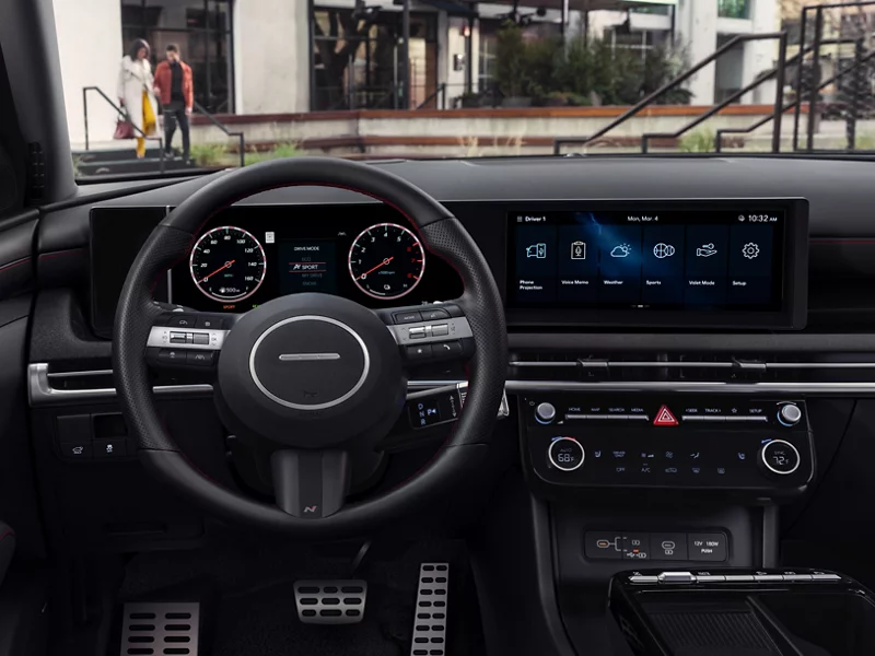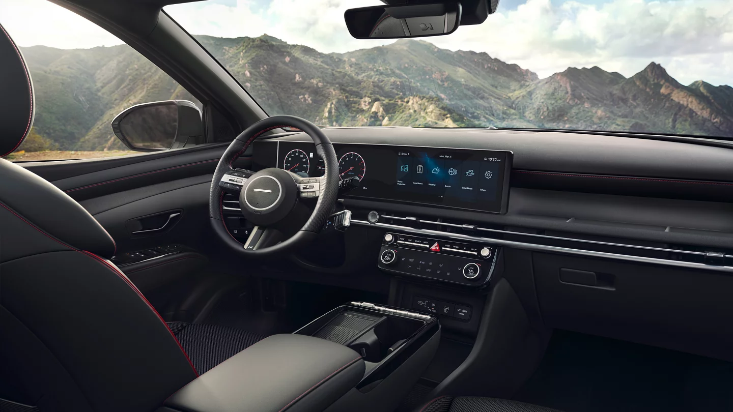 현대적이고 세련된 대시보드와 디지털 계기판이 눈에 띄죠. 중앙에 위치한 큰 터치스크린을 통해 다양한 기능을 쉽게 조작할 수 있어요.