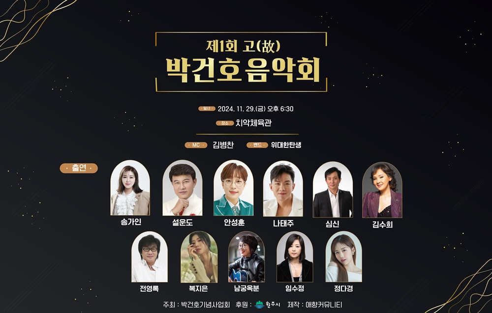 이 음악회는 고 박건호 작사가의 업적을 기리기 위해 마련된 자리로, 박건호 작사는 한국 대중음악의 발전에 큰 기여를 한 인물로, 그의 노래는 지금도 많은 사랑을 받고 있습니다.